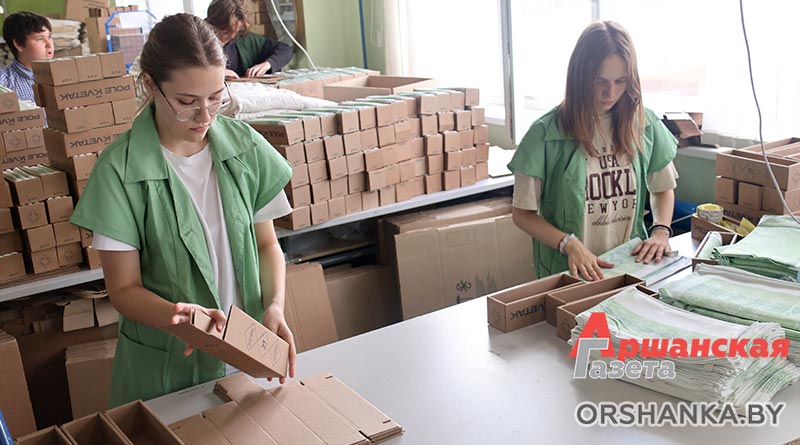 На Оршанском льнокомбинате в составе студенческого отряда «Ударник 4.0» имени Героя Советского Союза Егора Абрамовича Макеева» работают 20 ребят. Они занимаются упаковкой готовой продукции.