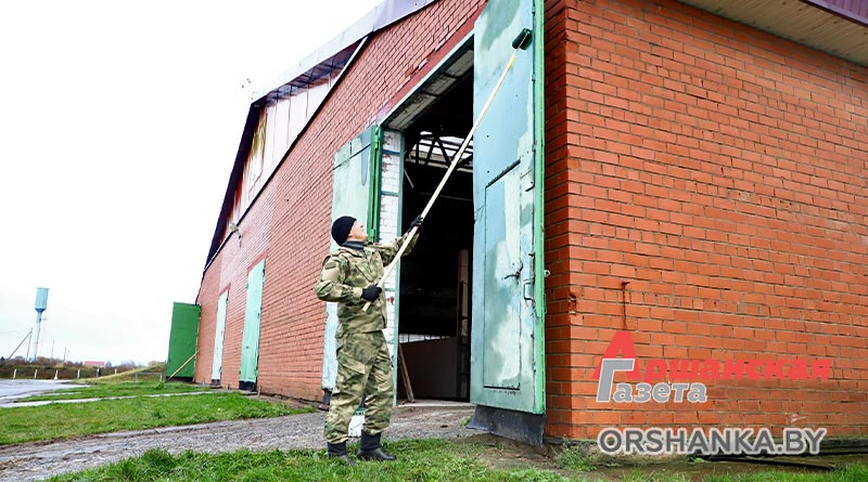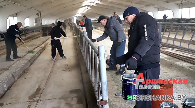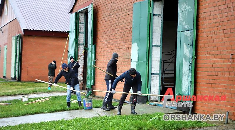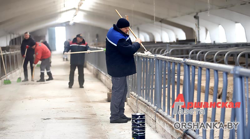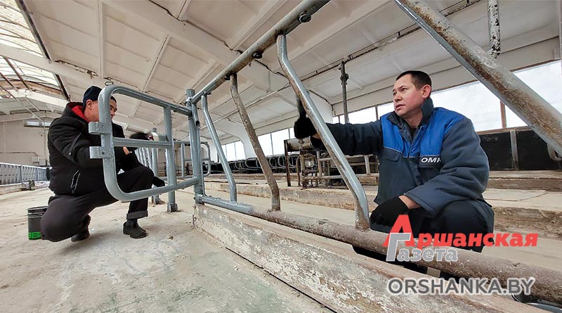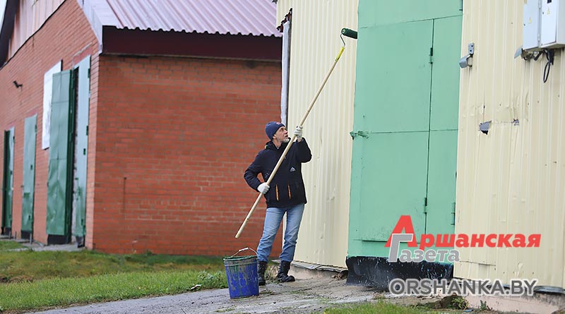 Работы на объекте начались с подъездных путей, где обкосом территории подстанции и столбов ЛЭП возле МТК занимаются работники Оршанских электросетей. На самом комплексе проводится ремонт и покраска ворот, стойлового оборудования, фронтонов и плитки внутри сараев, сварочные работы. Красят контейнеры и площадку для уборки мусора.