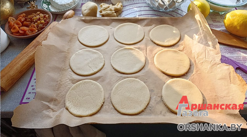Противень застилаем пергаментной бумагой, выкладываем тесто и выпекаем 15-20 минут при температуре 180 градусов (ориентируйтесь на свой духовой шкаф).