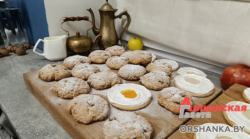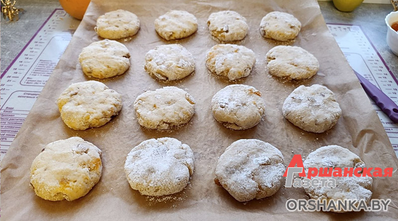 Лимонное печенье с изюмом, курагой и орехами