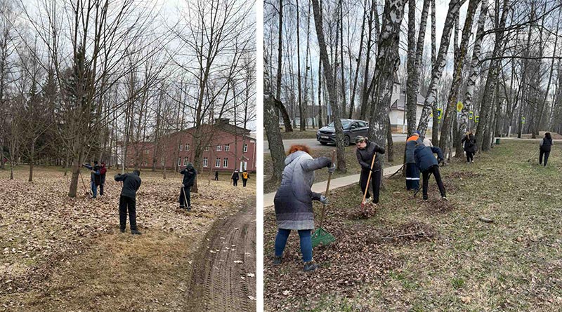 Трудовой десант Оршанского авиаремонтного завода распределился не только по территории своего предприятия, но и по обширным паркам г. п. Болбасово, где убирает палую листву. Уже чисто на аэродроме, возле памятного знака на месте гибели первого дважды Героя Советского Союза Сергея Грицевца. Выметается мусор на территории вокруг автобусной остановки.