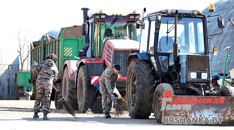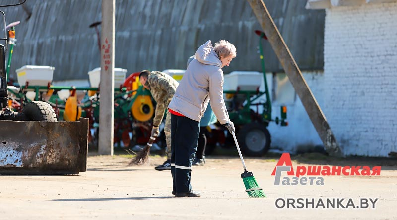 На машинном дворе СУП «Радуньское» в д. Заслоновка Оршанского района убирали территорию и в цехах ремонтной мастерской.