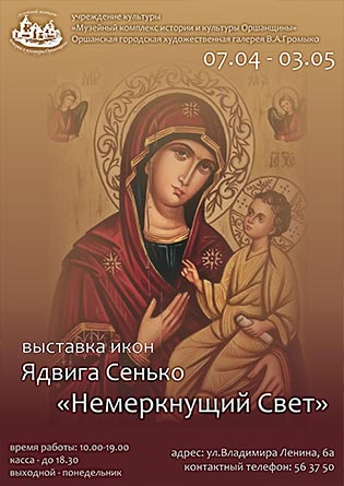В Оршанской городской художественной галерее В. А. Громыко работает выставка Ядвиги Сенько «Немеркнущий Свет». Экспозиция приурочена к Году белорусской женщины и помогает увидеть как женщины участвуют в сохранении духовных и культурных традиций.