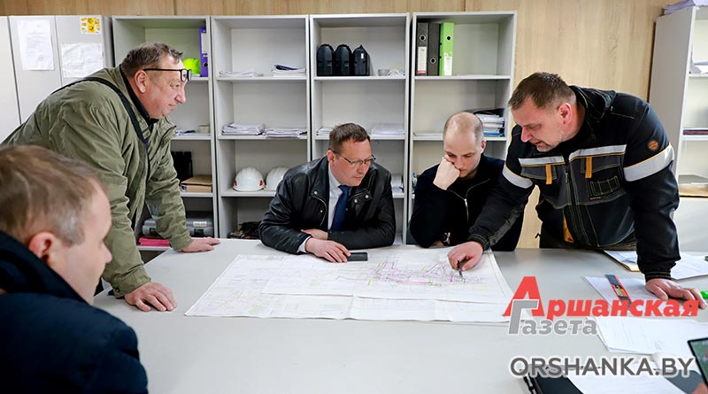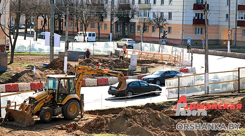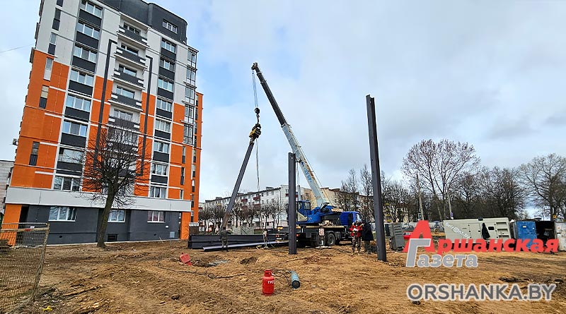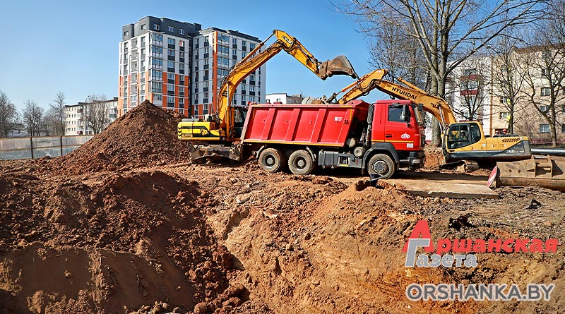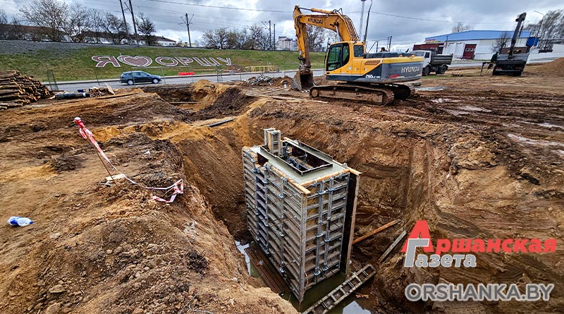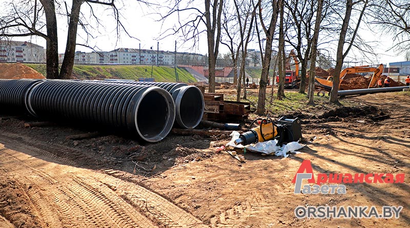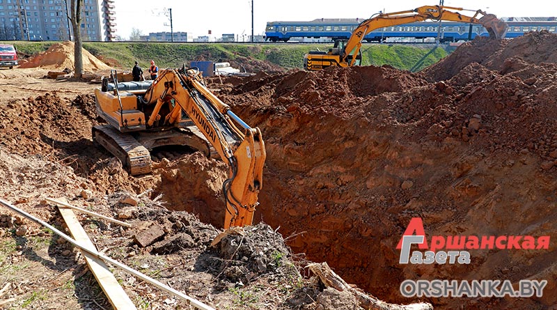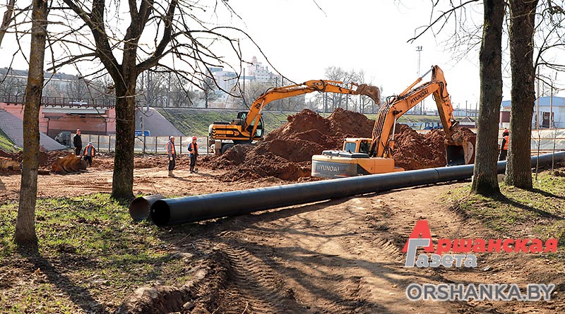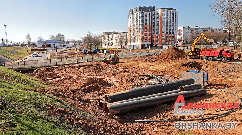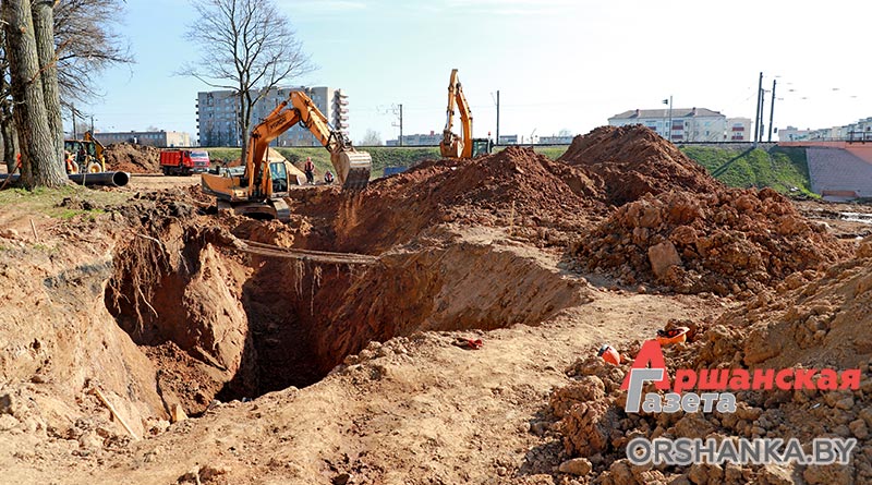 Силами Оршанского стройтреста №18 идет прокладка кабеля электроснабжения со стороны микрорайона Восточный. Подготовлены фундаменты для устройства сети наружного освещения.