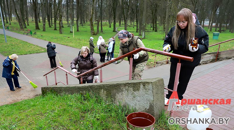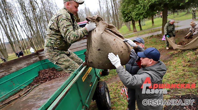 Работники Оршанского райисполкома и его структурных подразделений, представители коммунальных служб сегодня убирали листву, мусор, обрезали сучья деревьев, занимались покраской поручней, ремонтом малых архитектурных форм, устанавливали новые урны.