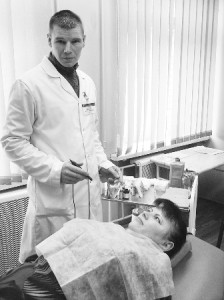 На снимке: врач-косметолог В. Волков с пациенткой.