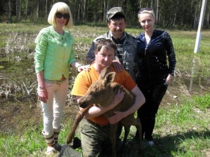 Выяснилось, что лосенку-мальчику всего 2-3 дня, поэтому наша команда решила назвать его Виктором (значит, победитель), так как это произошло как раз накануне Дня Победы. Егеря пообещали нам, что обязательно найдут маму Витюши и у него все будет хорошо.