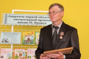 Выдатны падарунак шаноўнаму юбіляру прывезла старшыня Віцебскага аддзялення Саюза пісьменнікаў Беларусі Тамара Краснова-Гусачэнка. “У нашай краіне, як ні ў адной іншай, удзяляецца вялікая ўвага развіццю літаратуры. Калі мы страцім кнігу, жывое слова, мы страцім аснову ўсяго. Мы святкуем юбілей чалавека, які прысвяціў жыццё друкаванаму слову. У мінулым годзе мы праводзілі маніторынг сярод бібліятэк вобласці і высветлілі, што кнігі Трафімавых карыстаюцца вялізнай папулярнасцю: за год у Віцебскай вобласці творы пісьменнікаў выдалі на рукі больш за 10,5 тысячы разоў!” – расказала Тамара Іванаўна. Яна ўручыла Сяргею Анатольевічу Трафімаву ўзнагароду Саюза пісьменнікаў Беларусі – медаль “За вялікі ўклад у літаратуру” (на здымку).