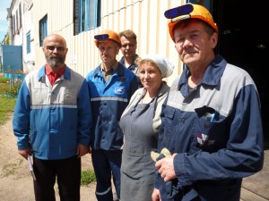 На снимке: (слева направо) работники литейного цеха ОАО «Завод «Легмаш» Александр Гуминский, Александр Шабуро, Игорь Жук, Татьяна Домбровская, Анатолий Раков.