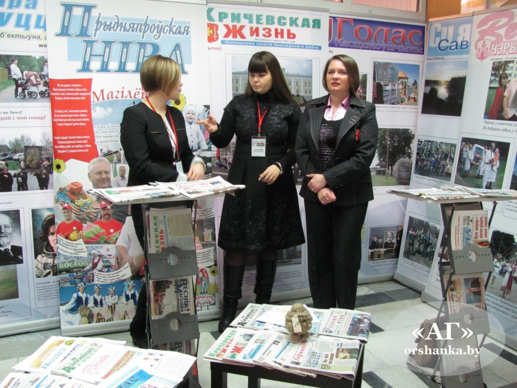 Суета только усиливала ощущение торжественности. В холле перед конференц-залом развернулась целая выставка СМИ: от газет Могилевщины до республиканских и даже изданий из Москвы. Многие участники привезли с собой и свою периодику, чтобы рассказать о ней коллегам. В любую минуту готовы были пообщаться с участниками представители БРСМ. Бесконечные вспышки фотокамер, буквально на каждом шагу журналисты берут интервью друг у друга – словом, здесь ни на минуту не забывали о работе. Нечасто журналисты становятся героями статей и сюжетов, но в этот раз вышло именно так.