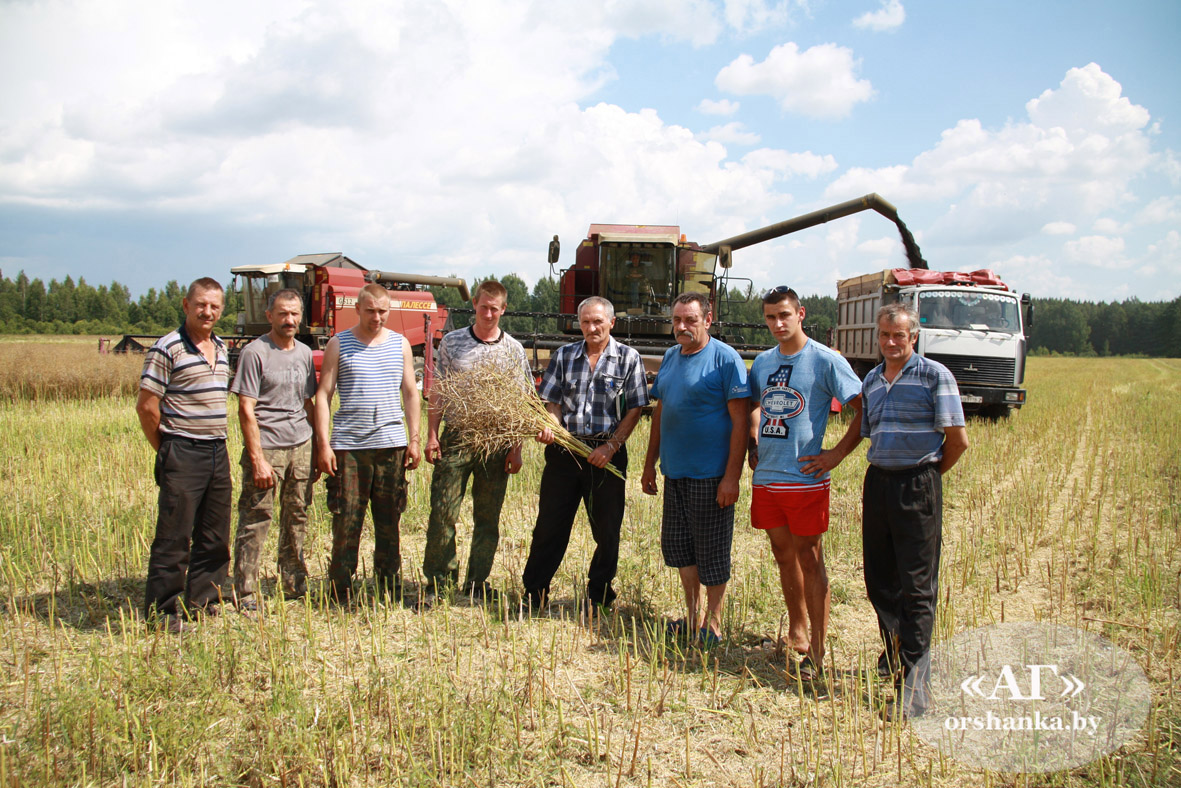 У полі працуе пяць экіпажаў камбайнераў і дзве адзінкі тэхнікі на адвозцы. Галоўны аграном сельскагаспадарчага прадпрыемства Генадзь Міранцоў упэўнены, што пры добрых умовах надвор’я за два-тры дні ўсе работы будуць завершаны. Тым больш, на камбайнах і вялікагрузных машынах працуюць вопытныя спецыялісты, выпрабаваныя не адной уборачнай кампаніяй. Ёсць сярод іх і некалькі сямейных экіпажаў. За штурваламі двух “караблёў” бацькі – Сяргей Міронька і Міхаіл Дубавец, а побач з імі сыны – Міхаіл Міронька і Уладзімір Дубавец. На адвозцы рапса шчыруе сямейны экіпаж вадзіцеляў Карпушонкаў – Генадзя Мікалаевіча і сына Уладзіслава.