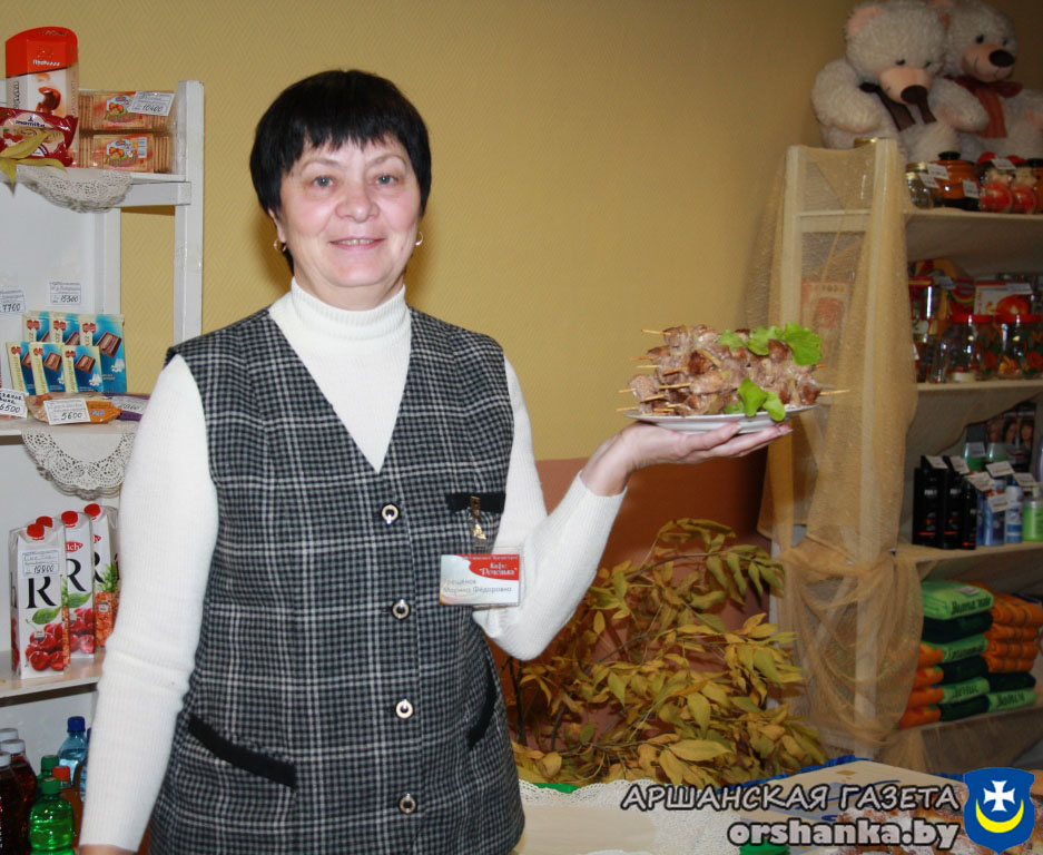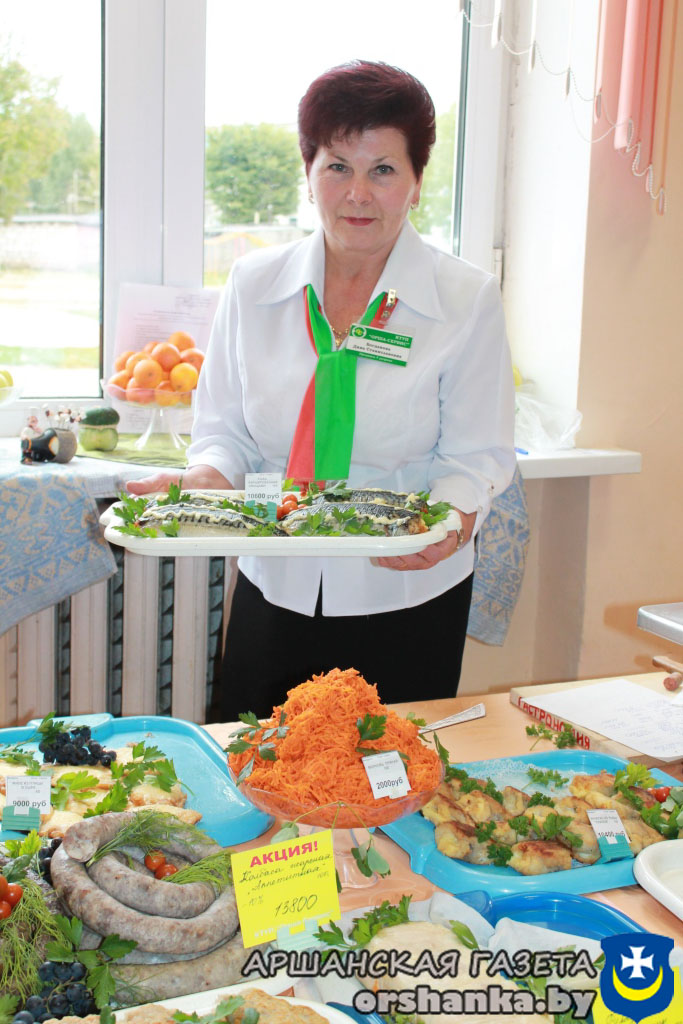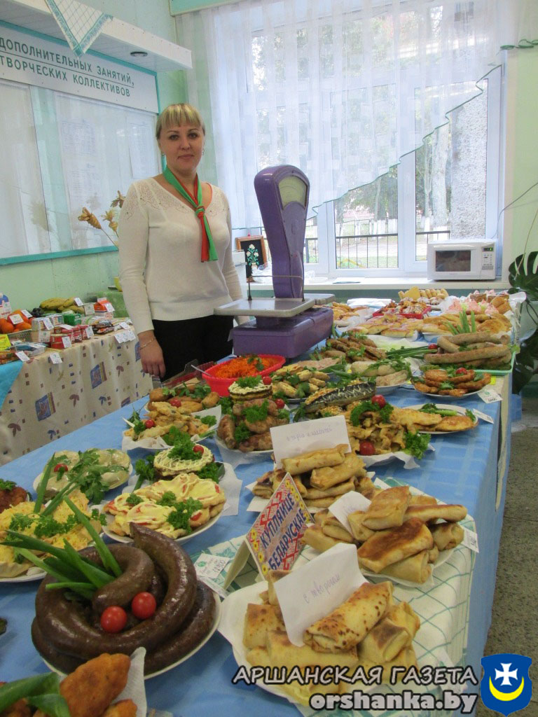 Хлебосольная хозяйка школьного буфета СШ №7 Дина Богданова предлагает подкрепиться вкусными блюдами от КТУП “Орша-Сервис”.