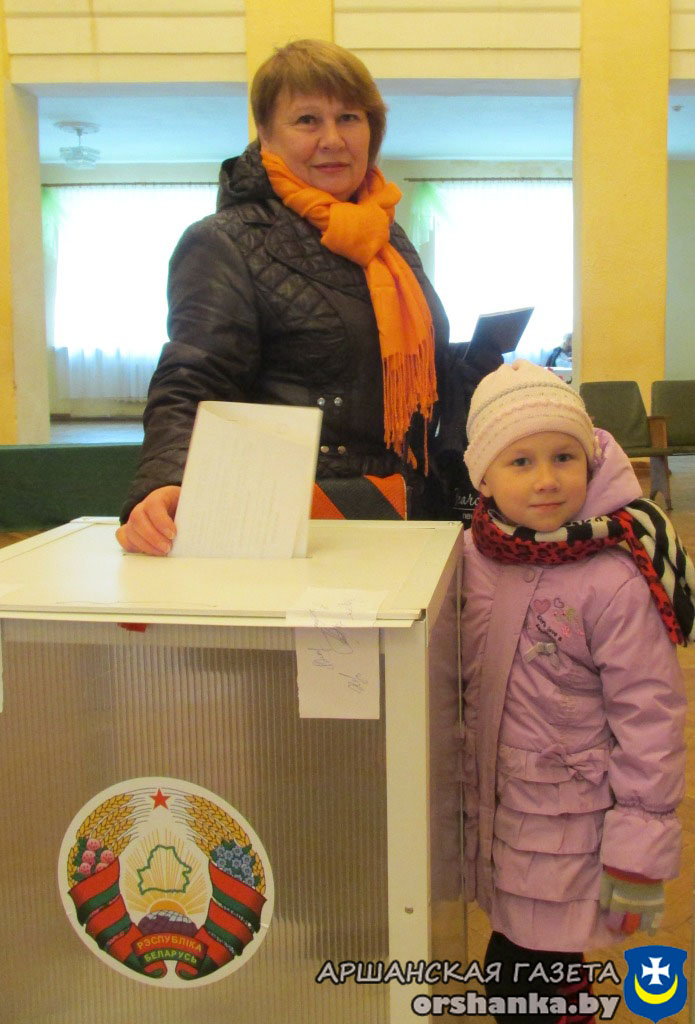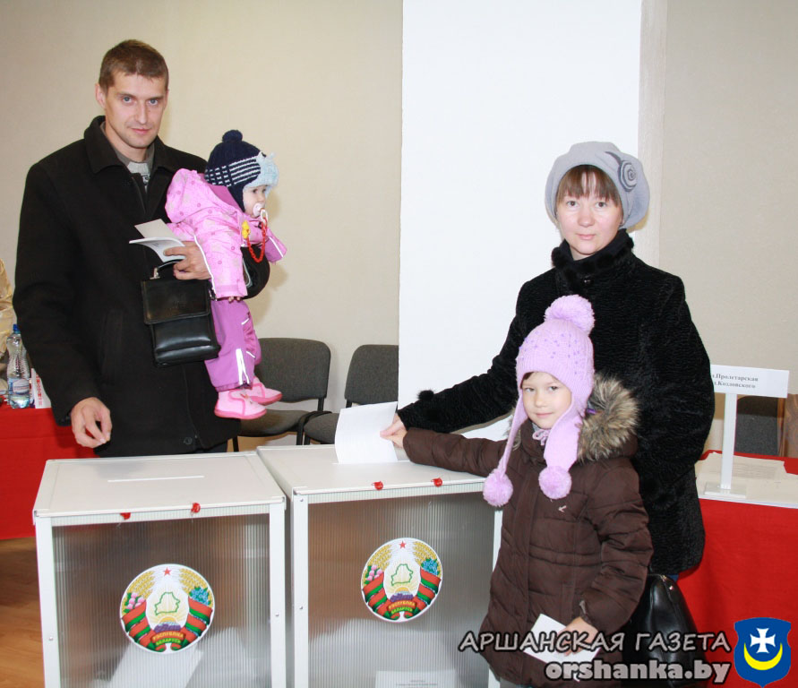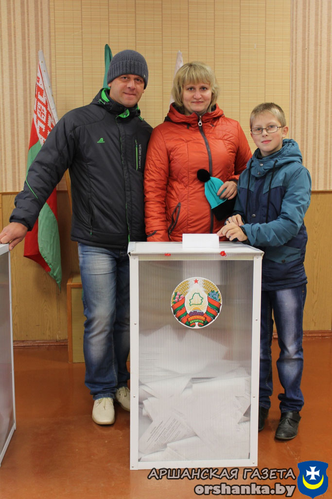 На участке для голосования №11, расположенном в административном здании государственного предприятия «Оршаводоканал», многолюдно с момента открытия. В районе много молодежи, поэтому нередко голосовать приходят семьями. Екатерина Щербакова пришла на участок, чтобы исполнить гражданский долг. Любимую жену и маму поддержали муж Дмитрий и дочь Алиса.