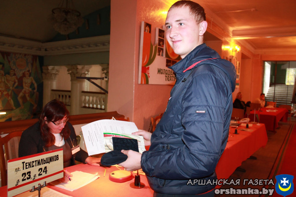 Вместе с мамой Натальей Питаленко на участок для голосования №24 в городском Дворце культуры «Орша» пришел Павел Питаленко, студент Полоцкого госуниверситета. Юноша впервые принял участие в выборах Президента Республики Беларусь, поэтому его ожидал сюрприз от участковой комиссии.
