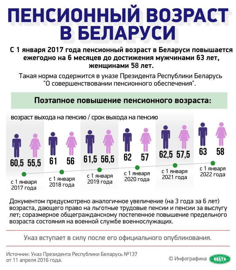 Повышение пенсионного возраста предусмотрено для всех категорий граждан в целях обеспечения одинакового, равного подхода. Такая информация содержится в комментарии к указу Президента от 11 апреля 2016 года №137 «О совершенствовании пенсионного обеспечения», опубликованном на сайте Министерства труда и социальной защиты.