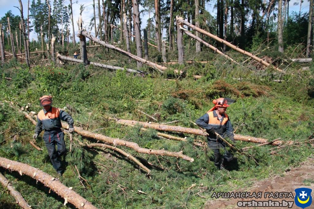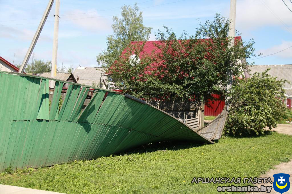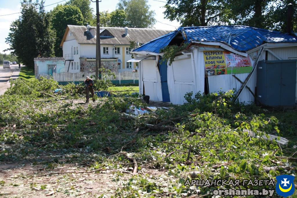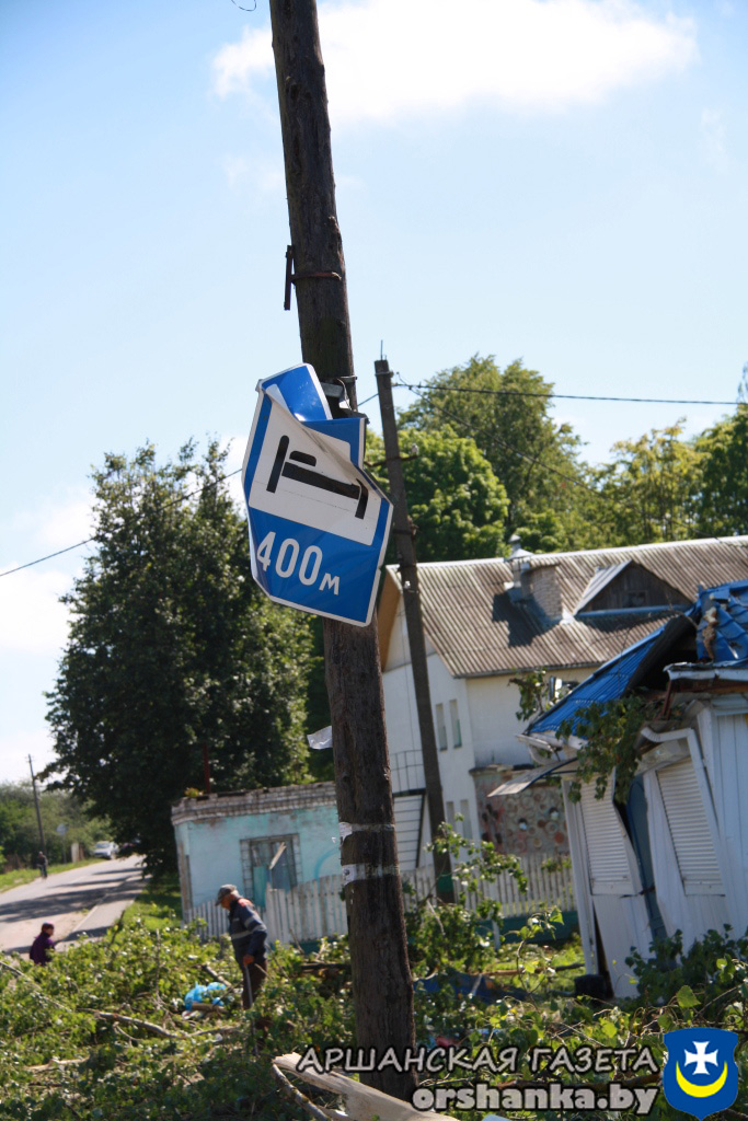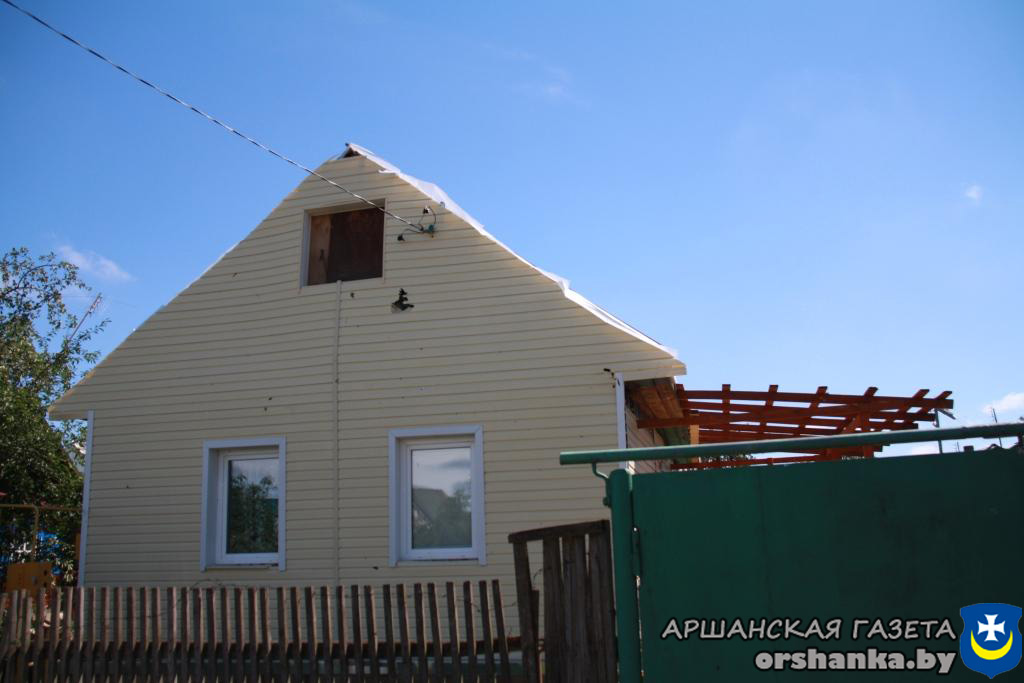 В Орше в эпицентре урагана оказался район железнодорожного вокзала и Западной. Уже в первые минуты после того, как стихия отступила, пользователи соцсетей стали делиться снимками, на которых видны масштабы разрушений после «шествия» урагана. По информации Оршанского ГРОЧС, в городе стихия нанесла вред более чем 100 строениям. Запомнят 13 июля и работники музея Героя Советского Союза Константина Заслонова. Порывы ветра буквально разобрали металлическую кровлю из оцинкованной жести. Была проведена эвакуация материальных ценностей в музей истории и культуры города Орши, а сотрудники Оршанского РОВД следили за порядком в пострадавшем от стихии учреждении культуры.