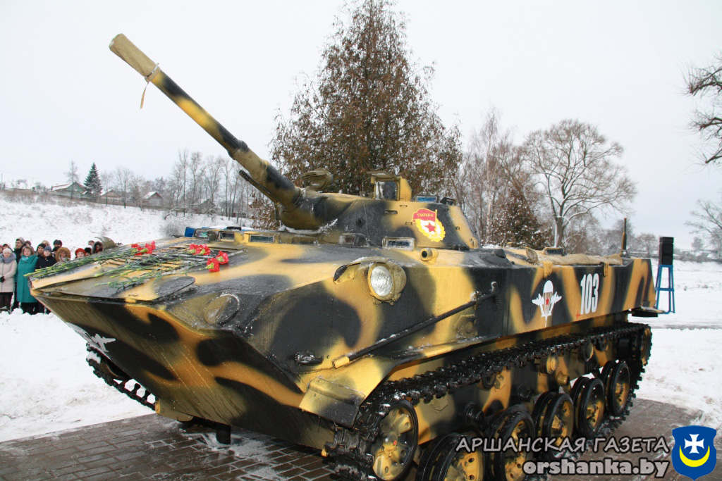 В память о событиях войны в Афганистане Оршанским районным исполнительным комитетом совместно с Министерством обороны Республики Беларусь при личном участии Министра обороны Андрея Равкова было принято решение установить боевую машину десанта, которая была принята на вооружение в 1969 году. Свое боевое крещение техника получила в афганской войне и стала настоящим символом военно-десантных войск.