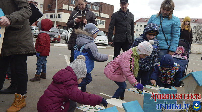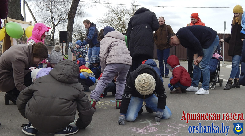 Вместе с родителями под задорные детские песни мальчики и девочки принимали участие в мастер-классе по раскрашиванию и декорированию скворечников, играли в подвижные игры, участвовали в познавательных и спортивных конкурсах, рисовали на асфальте.