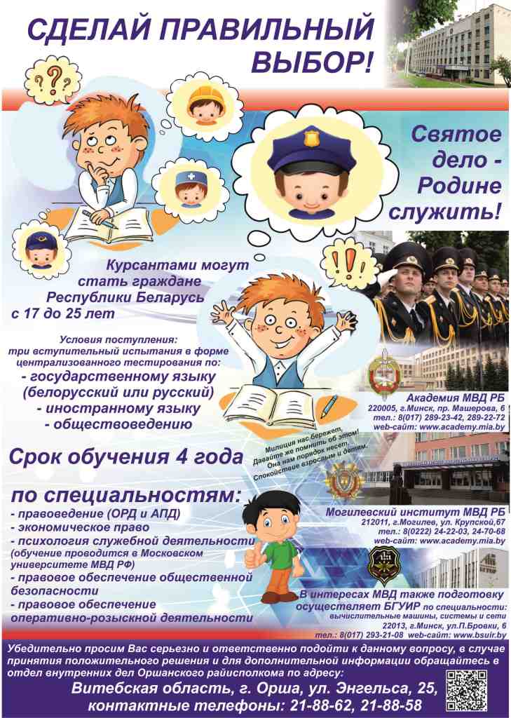 День открытых дверей с представителями Могилевского института и Академии МВД пройдет в Орше