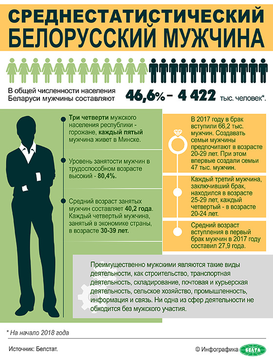 Три четверти мужского населения республики — горожане, каждый пятый мужчина живет в Минске.