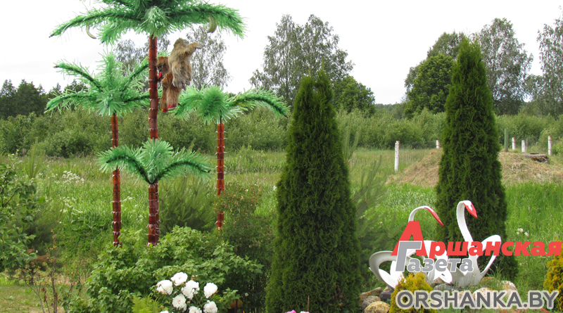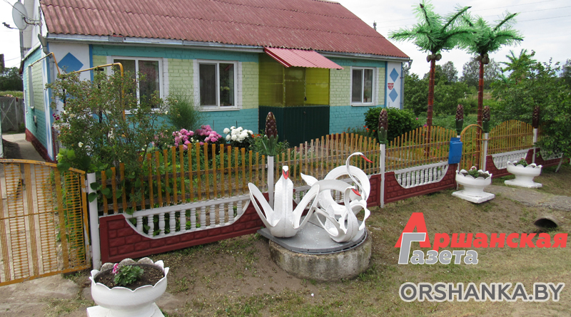 По улице Новой в Высоком привлекает внимание усадьба Карпицких с пальмами, лебедями, туями и цветами.