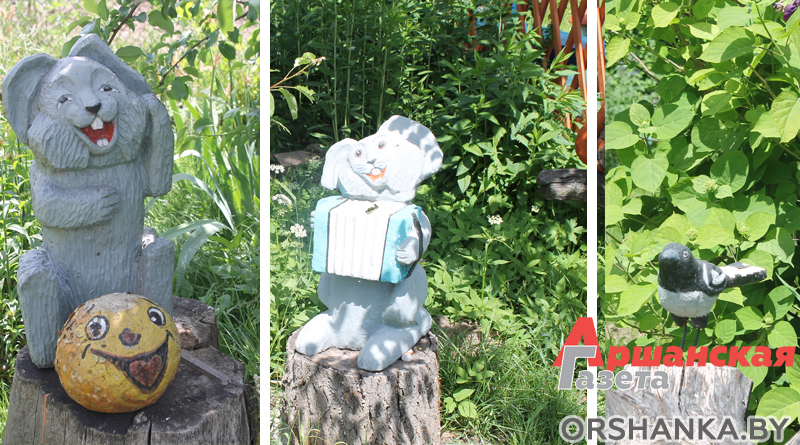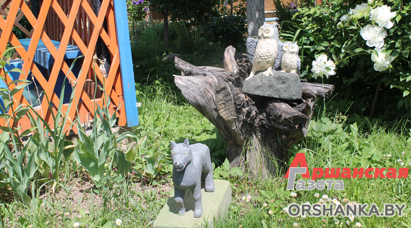 У их дома расположились беседка и пруд, качели. Присмотревшись, в траве находим целый зоопарк: птицы, белочки, медведи, зайцы – всех обитателей мастерит из строительных блоков умелец Петр Дмитриевич. «Часто к нам в гости заходят пациенты из госпиталя – просят сфотографироваться, – рассказывает Галина Францевна. – Мы не отказываем». Хозяйка признается, что содержать подворье в порядке дни них с мужем больше, чем привычка: «По-другому мы просто не можем».