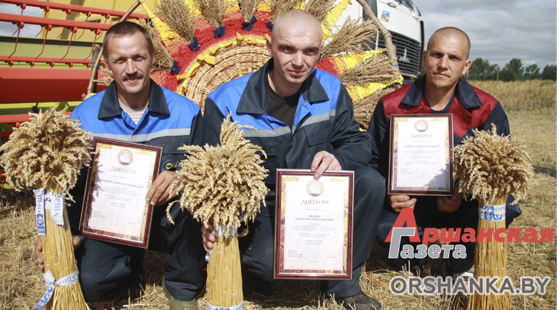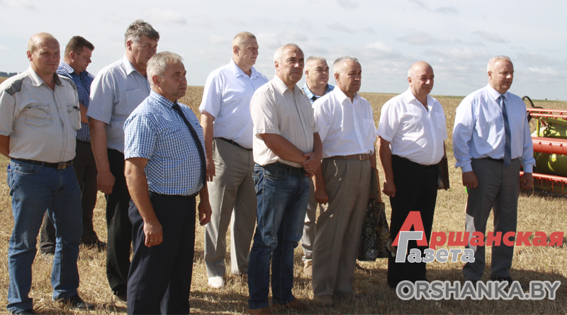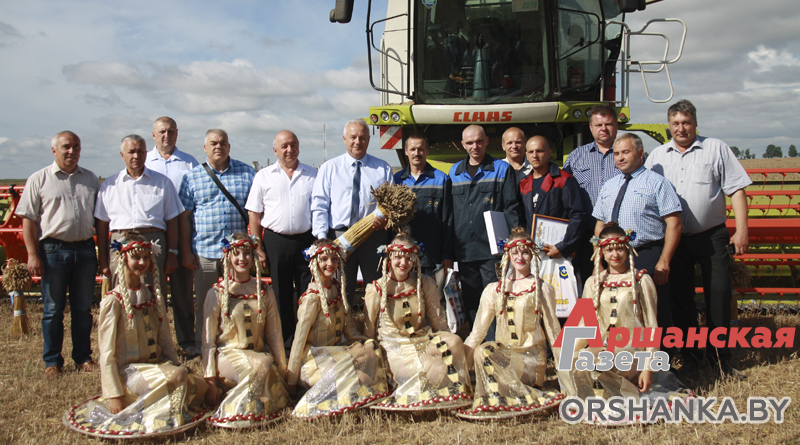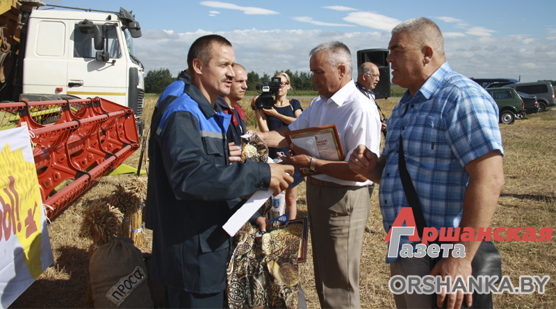 Лідараў жніва з новым рэкордам павіншавалі старшыня Аршанскага райвыканкама Аляксандр Пазняк, старшыня абласной арганізацыі Беларускага прафсаюза работнікаў АПК Віктар Гутараў, старшыня Аршанскага раённага аб’яднання прафсаюзаў Васіль Муранкоў,старшыня райкама прафсаюза работнікаў АПК Станіслаў Кошкін, а таксама генеральны дырэктар Аршанскага КХП Сяргей Герасімец. У адрас хлебаробаў гучалі словы падзякі за нялёгкую працу, а таксама пажаданні новых поспехаў і дасягненняў на хлебнай ніве.