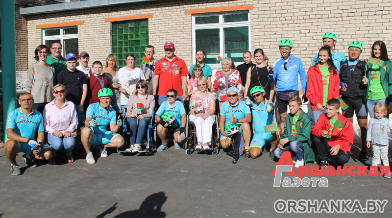 Часть пути спортсмены проехали по территории Беларуси. А в Оршанском регионе задержались на ночевку. Необычную делегацию приняли в Юрцевской детском саду-средней школе. Вместе с коллективом школы гостей встречали представители территориального центра социального обслуживания населения и его подопечные.