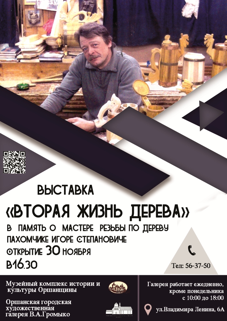 Приглашаем посетить выставку «Вторая жизнь дерева» в память о мастере резьбы по дереву Игоре Пахомчике. Официальное открытие состоится 30 ноября 2018 г. в 16.30.