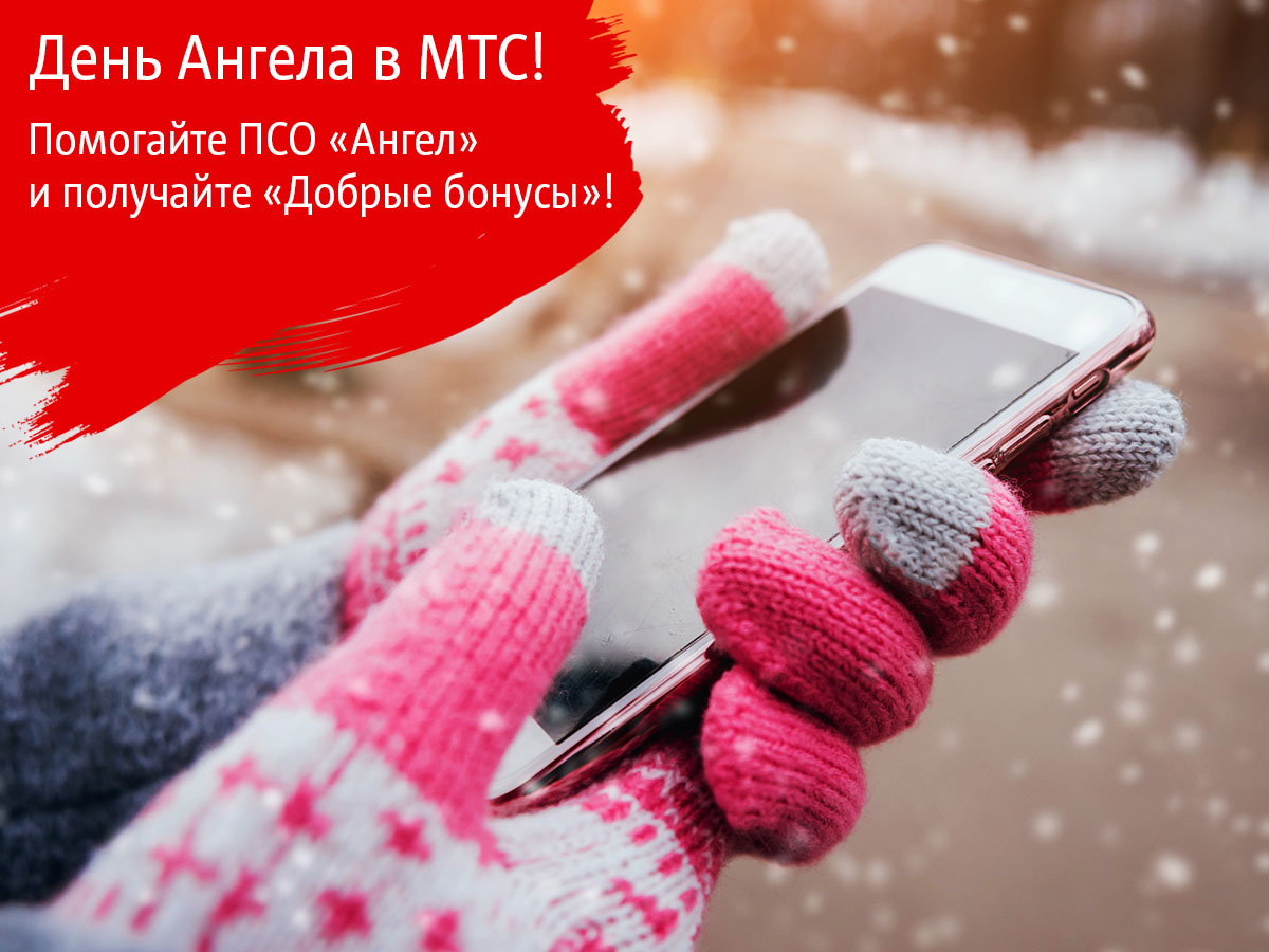 Давайте сделаем так, чтобы добрых дел стало больше. С 20 по 22 декабря в компании МТС пройдет акция «День Ангела». Каждый, кто в этот период перечислит на счет поисково-спасательного отряда «Ангел» 2 рубля, получит один «Добрый бонус» на выбор: 2 часа на бесплатные разговоры внутри сети или 2 месяца бесплатного пользования сервисом «Под защитой».