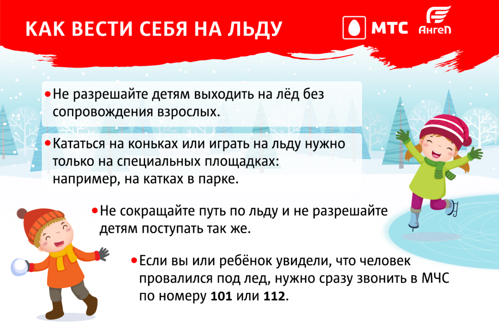Как вести себя на льду. Памятка для взрослых и детей от ПСО «Ангел» и МТС