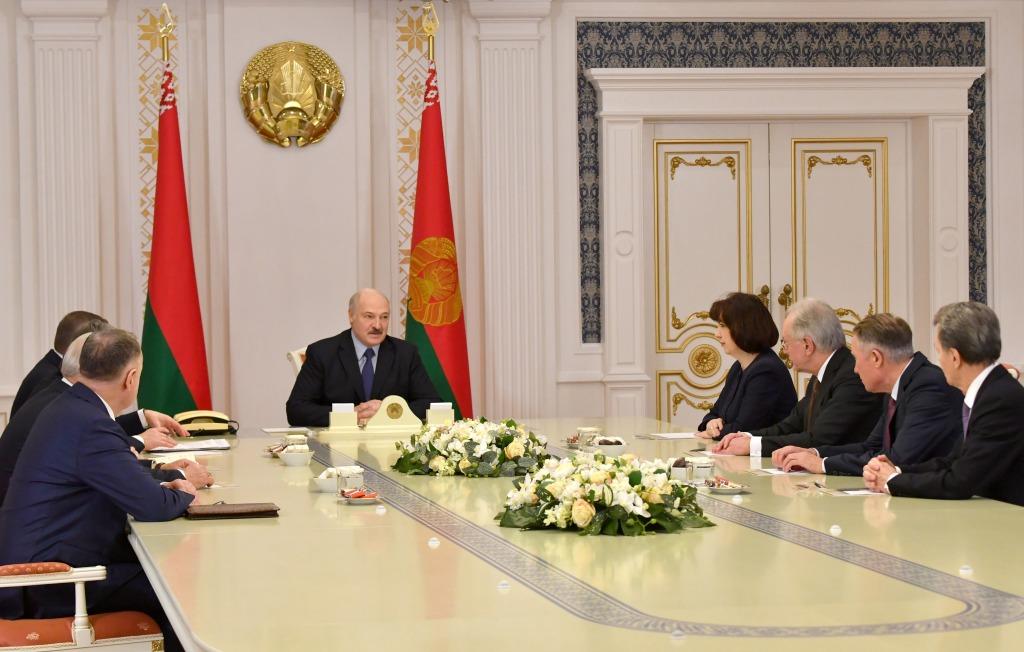 Президент Беларуси Александр Лукашенко в преддверии 100-летия белорусской дипломатической службы встретился с министрами иностранных дел, в разное время возглавлявшими МИД Беларуси. Фото Юрия Орешкина, БЕЛТА.