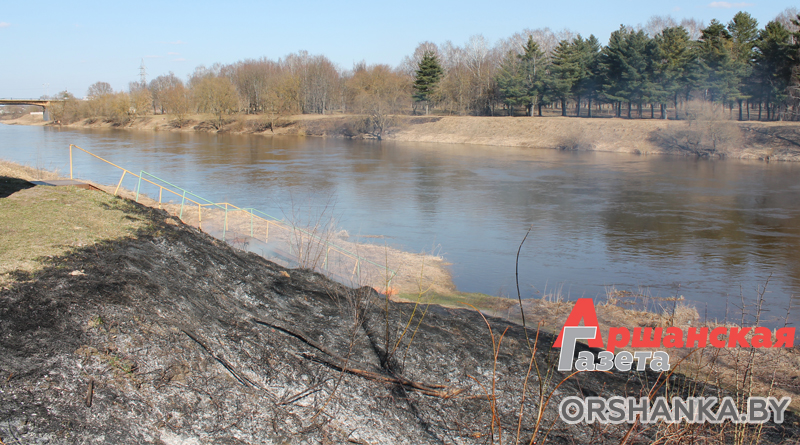 Со старшим инспектором группы пропаганды и взаимодействия с общественностью Оршанского ГРОЧС Николаем Барашом приезжаем на берег Оршицы напротив гражданского кладбища по ул. Энгельса. Пейзаж возле реки удручает: почерневшая земля, обгоревшие деревья и кустарники. И над выгоревшей поляной кружат птицы. «Часто на таких пожарах наши бойцы находят обгоревшие птичьи гнезда, мертвых животных. Недавно на выезде спасатели обнаружили в горящей траве зайчонка, и теперь он живет в одной из пожарных частей, – Николай Олегович показывает фотографию перепуганного зверька, едва не ставшего жертвой человеческой беспечности. – Трава никогда не загорится сама. Сухостой или поджигают специально, или он вспыхивает от горящего окурка».