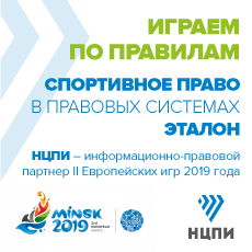 Чтобы каждый гражданин Беларуси и многочисленные гости нашей страны могли больше узнать о спорте и правовом регулировании спортивной сферы, НЦПИ открыл свободный доступ ко всему массиву документов спортивного права в специальном банке данных «СПОРТИВНОЕ ПРАВО» в ЭТАЛОН-ONLINE. Здесь каждый найдет полезное и интересное для себя: и руководители различных спортивных организаций, и тренеры, и профессиональные спортсмены, и обычные граждане.