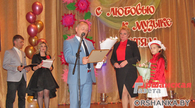 Поздравить родную школу с юбилеем приехал один из первых ее выпускников, профессор кафедры духовой музыки Белорусского государственного университета культуры и искусств, председатель ассоциации исполнителей на народных духовых инструментах Белорусского союза музыкальных деятелей, руководитель капеллы белорусских народных духовых инструментов «Гуды» Игорь Мангушев. На сцене Игорь Алексеевич сыграл на белорусской дудке и подарил учреждению несколько книг с авторскими произведениями.
