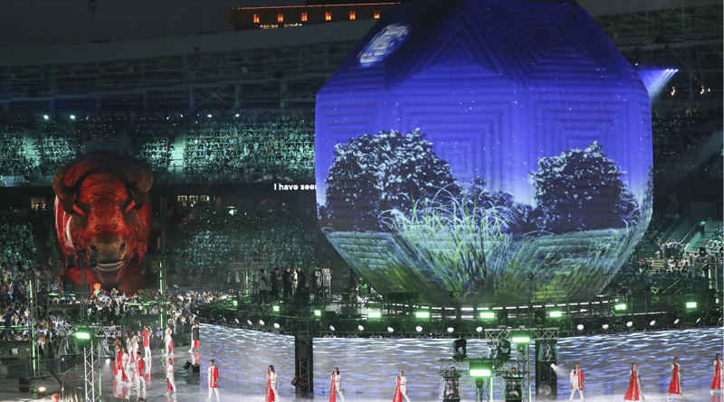 Шоу на стадионе «Динамо» стало логическим продолжением церемонии открытия. Организаторы удивили зрителей грандиозным представлением с использованием новейших технических средств и IT-решений. Особое внимание уделено чествованию спортсменов и волонтеров.