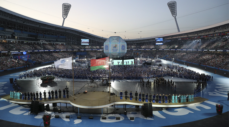 Спортивный форум, который провела Беларусь, завершился красочной церемонией закрытия, в которой приняли участие спортсмены из 50 стран. В ложе почетных гостей за церемонией наблюдали вместе с Президентом Беларуси Александром Лукашенко многие высокопоставленные гости, среди которых Президент России Владимир Путин, Президент Таджикистана Эмомали Рахмон, Президент Армении Армен Саркисян, глава Международного олимпийского комитета Томас Бах.