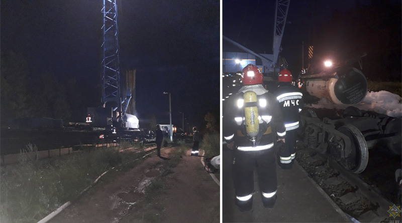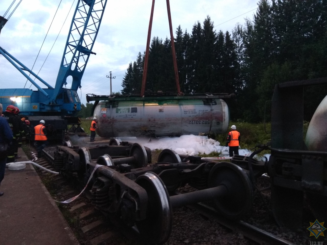 24 июля в 18:43 в МЧС поступило сообщение о сходе с рельсов 15 цистерн грузового поезда (всего 68 вагонов в составе, в том числе 39 цистерн с газом, 1 вагон с древесиной, 28 порожних полувагонов) на участке Витебск-Орша вблизи деревни Замосточье.