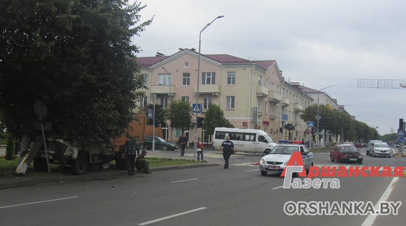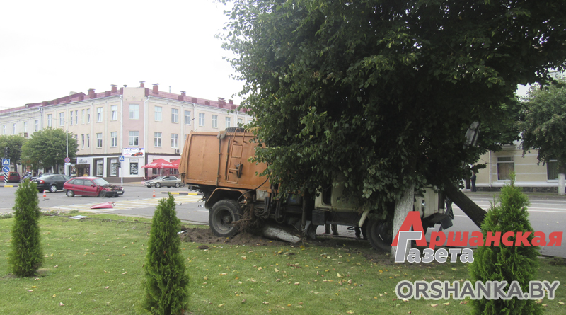 8 августа около 13.50 в центре города на оживленном перекрестке ул. Ленина и Комсомольской произошло дорожно-транспортное происшествие с участием грузового и легкового автомобилей. От удара автомобиль для вывоза мусора повредил дорожный знак и дерево, а само транспортное средство оказалось на газоне. Был сильно поврежден и легковой автомобиль.