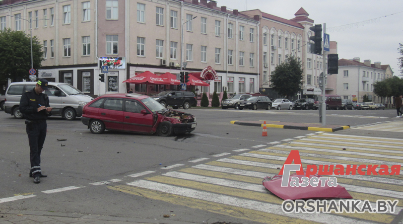 Авария в центре Орши. Оба автомобиля двигались на разрешающий сигнал светофора