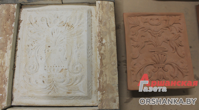 “Па выніках археалагічных раскопак спецыялісты распрацавалі віцебскую кафлю – на ёй бачым букет, які пераходзіць у дрэва жыцця, – пасля майстар паказвае другі бок з прамавугольнай адкрытай каробкай: – Галоўнае, што адрознівае кафлю ад пліткі, – румпа на адвароце. Яна акумуліравала цяпло, і печка доўга не астывала. Румпу рабілі рознымі спосабамі, нават на ганчарным крузе ці ўручную – ад гэтага залежыла яе форма. У нас гіпсавая форма для кафлі, раней былі драўляныя. Кафлю робяць рознымі спосабамі: спачатку заліваюць у форму, потым працуюць над румпай. Можна рабіць форму адразу з румпай. Можна рабіць атмінку ў форме. Паспрабуем усе варыянты”.