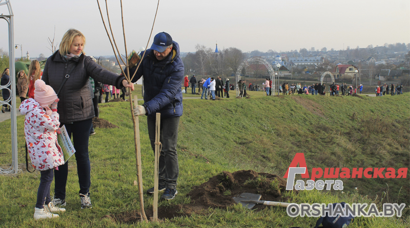 В прошлую субботу 80 оршанских семей сделали подарок малой родине – на набережной Днепра по улице Советской посадили кленовую аллею в парке семейных деревьев.
