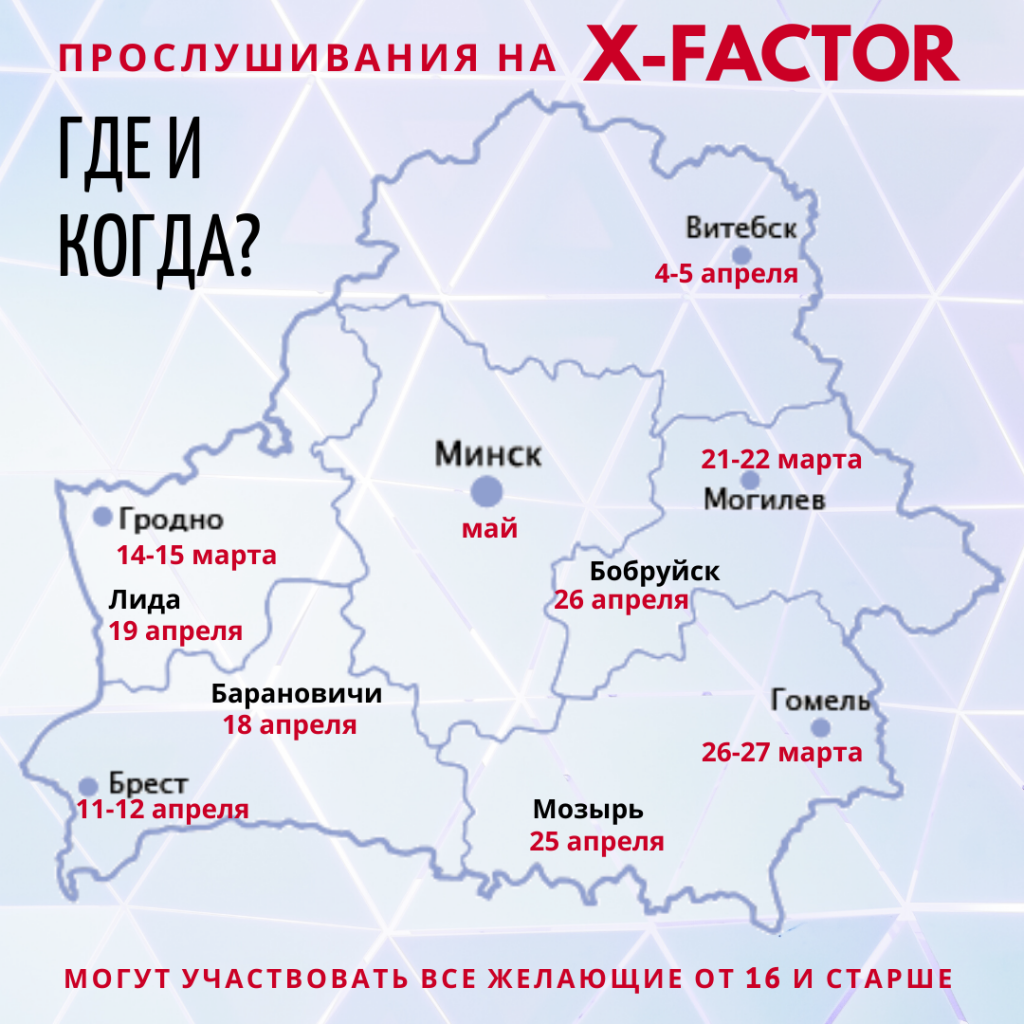 Нет возможности поехать на прослушивания? Участвуйте в предкастинге в Инстаграме, подробности в аккаунте @xfactorbelarus.