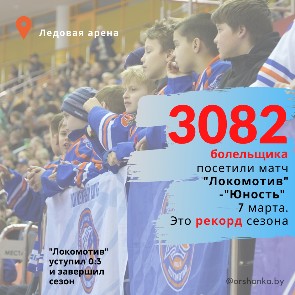 К тому же 7 марта матч «Локомотив» – «Юность» в Орше посетили 3082 человека. И это рекорд сезона 2019/20.