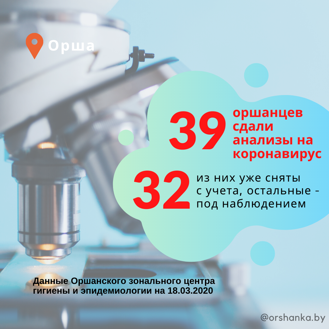 Если человек возвращался в Оршу, минуя стационарные пункты пропуска, например, через Россию или через Литву, и не сообщил, что находился в эпидемиологически неблагополучной стране, лабораторное обследование проводится в поликлиниках № 1, 2 и 5, а также в инфекционном отделении горбольницы № 3 (круглосуточно). Через 13 дней анализ повторяется. Если человек здоров и у него не выявляются признаки респираторного заболевания и два лабораторных анализа показывают отрицательные результаты, то пациент снимается с учета.