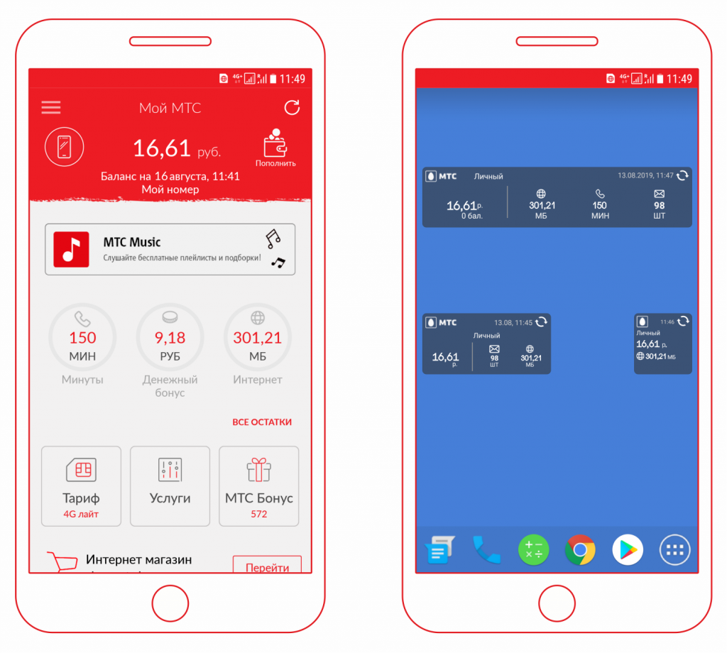 Даже при блокировке номера в «Мой МТС» можно проверить баланс и остатки трафика, зарегистрировать обещанный платеж. Эти же операции можно совершать с номерами родных и близких: приложение позволяет подключать дополнительные номера и полноценно ими управлять. Чтобы баланс и оставшийся мобильный трафик всегда были перед глазами, можно установить виджет на экране смартфона.