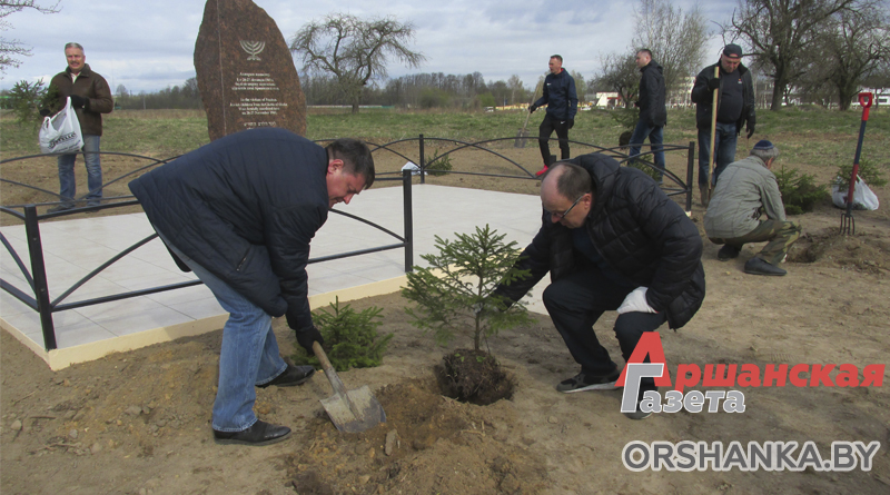 Инициаторы восстановления памятника жертвам фашизма на еврейском кладбище в Орше во время субботника 25 апреля посадили молодые ели.