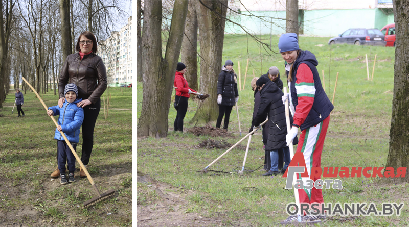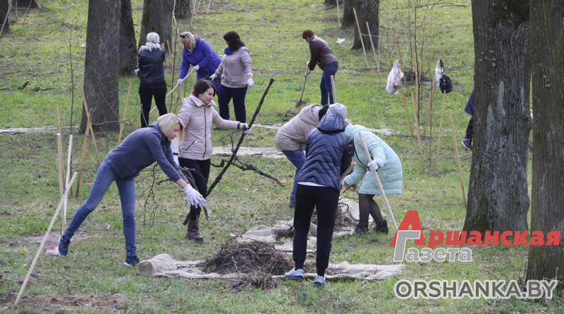 В день республиканского субботника в парк высадился трудовой десант – порядка 300 человек. Это работники Оршанского районного исполнительного комитета во главе с председателем Игорем Исаченко, представители коммунальных служб, музыкальной школы № 2. Работа по наведению порядка развернулась с самого утра. Убирали прошлогоднюю листву и сухие ветки, мусор, сажали деревья, выкорчевывали пни.
