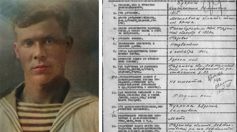 Константин Семёнович родился в 1915 году в Могилёвской области на станции Орша. Так указано в анкете, которую прислал нам Дмитрий. Ее заполнила Бугрина Евдокия Семёновна, это прабабушка Дмитрия и мать Константина Семёновича. Известно, что К. Бугрин служил на Балтийском флоте и погиб в 1941 году.