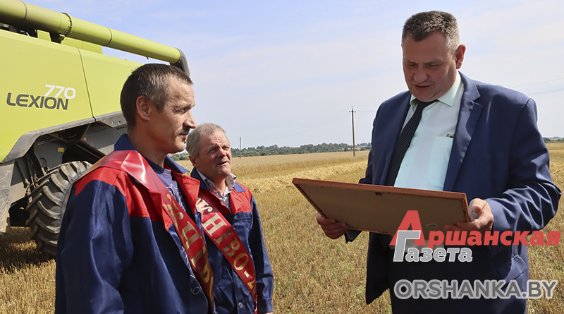 Прямо в поле отца и сына сегодня поздравили с победой председатель райисполкома, руководство районного объединения профсоюзов работников АПК, сельхоз- и головной организации, в которой трудятся хлеборобы.